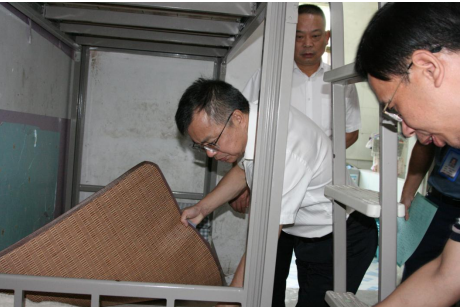 在本次看望同學們的過程中,每到一個宿舍,學院領導都親自查看舊鐵床是否安全,床上用品的質量過不過關,關心他們來到學校后是否還適應,并仔細查看宿舍的各種設施是否完善;了解同學的家庭狀況,興趣愛好等;并親切與同學們交談,同學們來自全省不同地方,要珍惜彼此之間的友誼,互相包容,互相理解,加強交流。