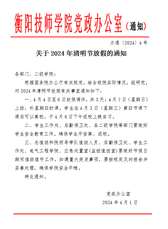關(guān)于2024年清明節(jié)放假的通知