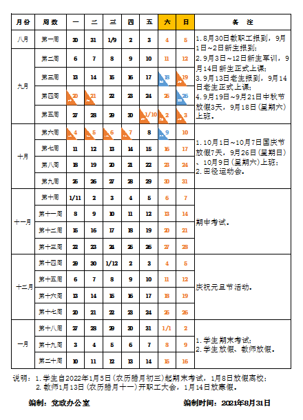 衡陽技師學(xué)院2021年下學(xué)期校歷