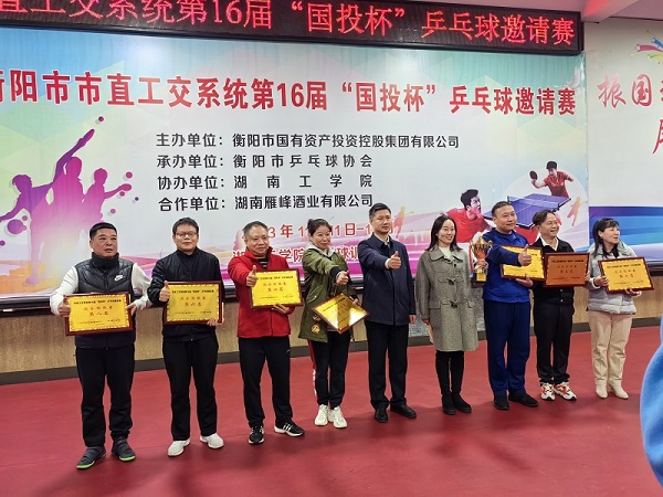 2023年11月11日至12日,衡陽市市直工交系統(tǒng)第16屆“國投杯”乒乓球邀請(qǐng)賽在湖南工學(xué)院乒乓球教學(xué)訓(xùn)練中心隆重舉行,來自市直工交系統(tǒng)的25支代表隊(duì)、221名選手參加比賽。我院代表隊(duì)團(tuán)結(jié)一心,敢打敢拼,取得了近10年來創(chuàng)紀(jì)錄的好成績。院長廖與飛榮獲特邀嘉賓甲組第五名,電氣工程學(xué)院賀鑫榮獲男子單打乙組(45歲以下)第二名,我院代表隊(duì)獲團(tuán)體賽第六名。