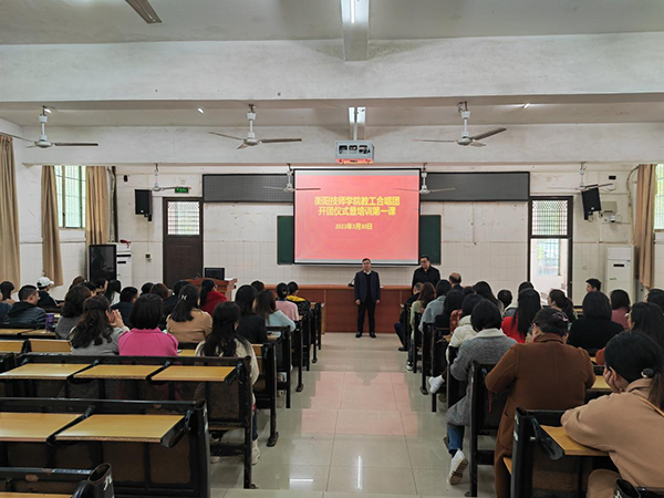 3月30日下午,衡陽技師學院教工合唱團在第一教學樓東頭一樓多媒體教室舉行開團儀式,并進行首次授課。學院黨委書記肖春林、黨委副書記陳干甲出席儀式。