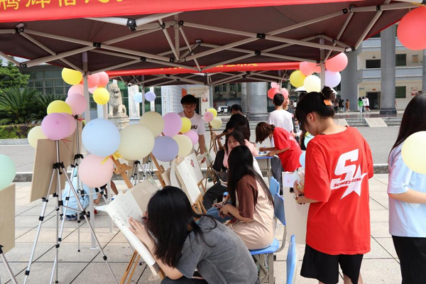 在學院文化廣場上,“音”你而來、“N人N足”游戲、“解壓涂鴉”“幸福套圈圈”“心情交換盲盒”等有趣活動吸引了數千名學生參加,活動現場熱鬧不斷。大家積極合作、大膽參與,興奮溢于言表,對游戲感受頗深。