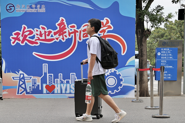 9月2日,衡陽技師學院迎來2023級新生。“熱烈歡迎新同學”“為黨育人、為國育才,努力辦好人民滿意的教育”……校園里,熱情洋溢的橫幅、新穎有趣的打卡墻,迎接2023級新生的到來。