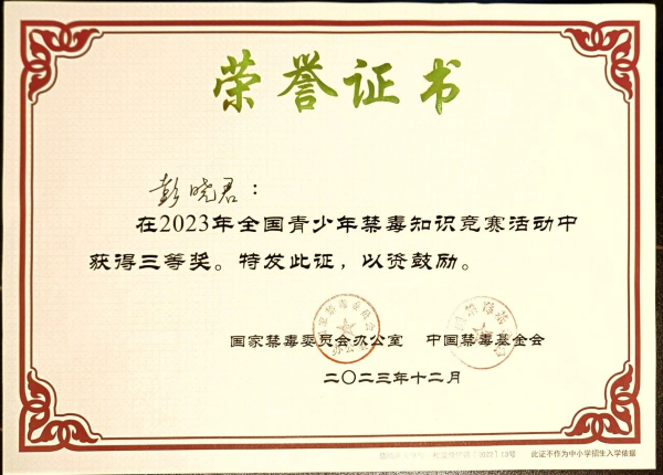 12月6日,2023年全國青少年禁毒知識競賽總決賽在福建省福州市舉行,我院20汽車營銷班學生彭曉君代表湖南隊參賽,經過激烈角逐榮獲三等獎。