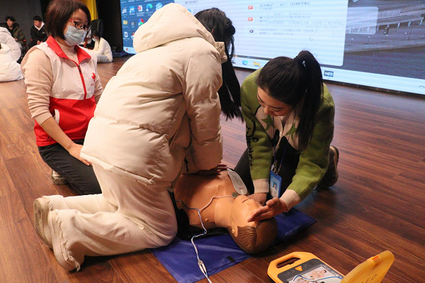 與傳統(tǒng)的培訓(xùn)方式不同,此次培訓(xùn)采用了理論與實(shí)踐相結(jié)合的方法。培訓(xùn)開始前,學(xué)員們已在“中國(guó)紅十字會(huì)總會(huì)訓(xùn)練中心”完成線上理論學(xué)習(xí),并順利通過了線上考試。線下講解演示完畢后,同學(xué)們利用人體模型進(jìn)行模擬實(shí)訓(xùn),現(xiàn)場(chǎng)的紅十字志愿者老師對(duì)急救姿勢(shì)及手法進(jìn)行指導(dǎo),并幫助同學(xué)們糾正操作中的錯(cuò)誤,讓大家能夠更好地將理論知識(shí)轉(zhuǎn)化為實(shí)際操作。同學(xué)們用飽滿的熱情和認(rèn)真的態(tài)度仔細(xì)學(xué)習(xí),積極提問,主動(dòng)實(shí)踐。