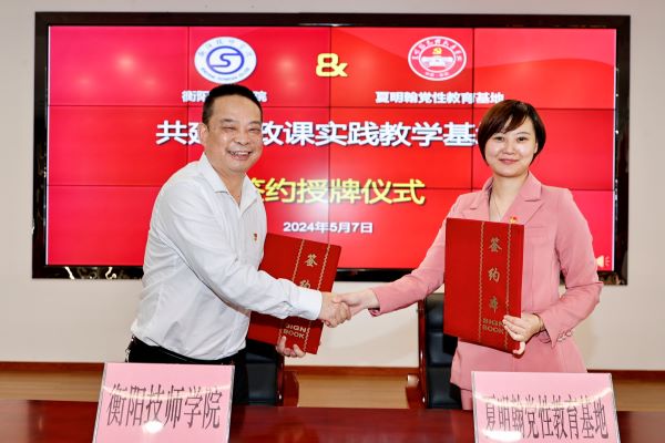 5月7日上午,衡陽技師學(xué)院與夏明翰黨性教育基地舉行了思政課實(shí)踐教學(xué)基地簽約儀式。學(xué)院黨委書記肖春林,黨委副書記、院長廖與飛,衡陽縣委常委、組織部部長、統(tǒng)戰(zhàn)部部長羅斌等領(lǐng)導(dǎo)出席,衡陽縣委組織部副部長陳志峰主持儀式。