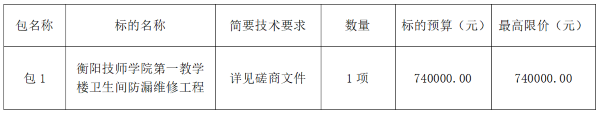 衡陽技師學(xué)院的第一教學(xué)樓衛(wèi)生間防漏維修工程項目進行采購,現(xiàn)邀請合格投標(biāo)人參加投標(biāo)。