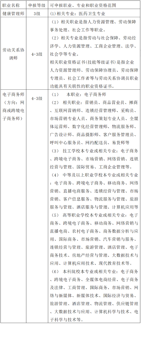 (四)可申報職業、專業和職業資格范圍