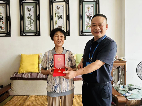 廖與飛為劉詩秀頒發“光榮在黨50年”紀念章