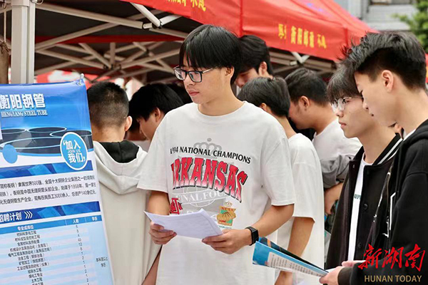 衡陽(yáng)技師學(xué)院學(xué)生在校園招聘會(huì)上現(xiàn)場(chǎng)應(yīng)聘