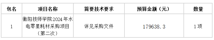 采購項目名稱:衡陽技師學院2024年水電零星耗材采購項目(第二次)