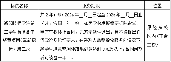項目名稱:衡陽技師學院第二學生食堂合作經營項目(重新招標)第二次