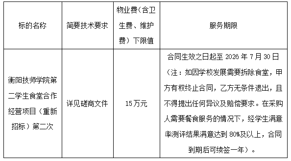 采購項目名稱:衡陽技師學院第二學生食堂合作經營項目(重新招標)第二次