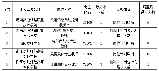 2025年度衡陽市市屬高職院校高層次和急需緊缺專業(yè)技術(shù)人才引進崗位調(diào)整目錄