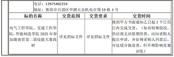 衡陽技師學院的衡陽技師學院參加2025年湖南省第二屆技能大賽耗材采購項目公開招標采購項目于2025年01月13日結束,現將中標(成交)結果公告如下: