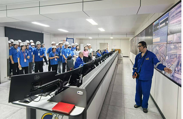 師生們參觀了衡鋼340廠的全自動化鋼管生產線,詳細了解了從原材料到鋼管成品的制造全流程。“原來鋼管生產已經這么智能了!”看著自動化、智能化機械精準完成鉆孔工序,學生們興奮不已。全國勞動模范陳育偉現場講解了自動化、智能化生產線的運作原理,讓師生們切身感受到現代工業制造的創新魅力。