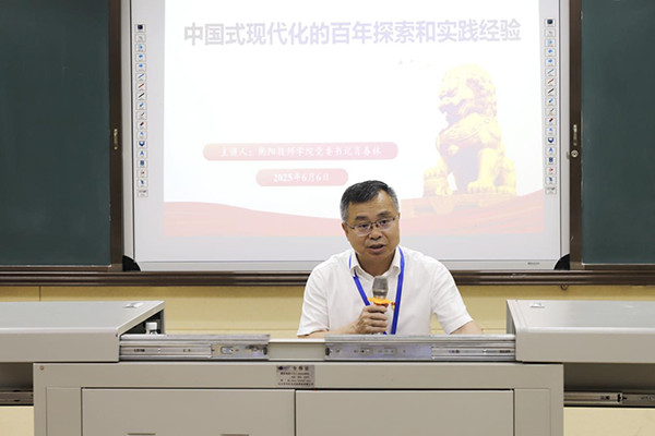 在專題黨課環節,肖春林以“中國式現代化的百年探索和實踐經驗”為題,從發展歷程、內涵特征、實踐路徑等方面闡述了中國式現代化的理論成果。他通過黨史案例、國際熱點和本地實踐,生動展現了中國式現代化的獨特優勢和時代價值,引發學員共鳴。