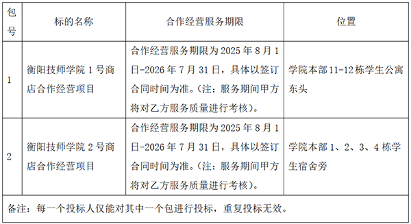 華新項(xiàng)目管理集團(tuán)有限公司受衡陽(yáng)技師學(xué)院的委托,對(duì)衡陽(yáng)技師學(xué)院1、2、4號(hào)商店合作經(jīng)營(yíng)項(xiàng)目(第二次)進(jìn)行院內(nèi)自主招標(biāo),邀請(qǐng)符合資質(zhì)條件的投標(biāo)人來參加投標(biāo)。