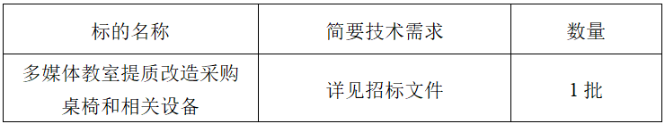 2.采購項目名稱:多媒體教室提質改造采購桌椅和相關設備項目