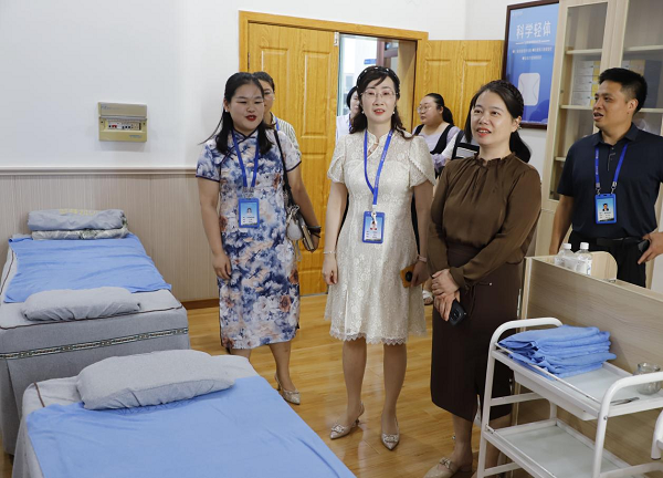 金姍姍一行實地參觀了經貿旅游學院美容美發體驗館、康養美體實訓室、艾灸推拿實訓室等實訓場所,對學院注重實踐技能培養、緊密對接行業需求的辦學理念給予了高度評價。