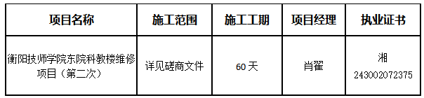 衡陽技師學院東院科教樓維修項目(第二次)于2025年07月22日結束,現將成交結果公告如下: