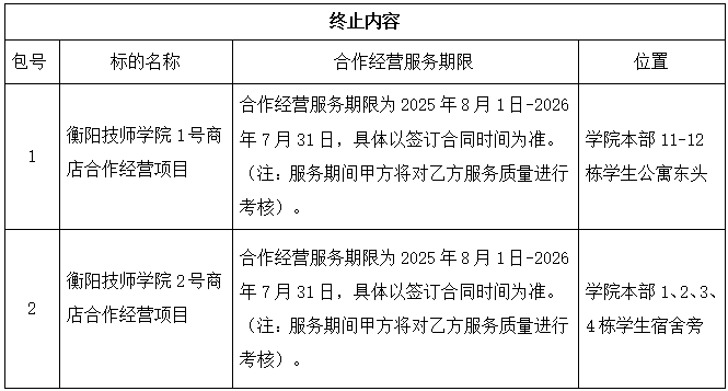 一、項目名稱:衡陽技師學院1、2、4號商店合作經營項目