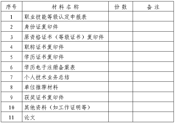 1.湖南省職業技能等級認定申報表 1 份。