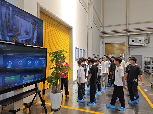 參觀現場,工作人員介紹了企業發展歷程、先進技術與精密儀器設備等情況,讓學生對未來所學專業有了初步的認識。同學們走進產業園區車間,參觀車間內的全自動化設備,見證了高端裝備的精密誕生過程。