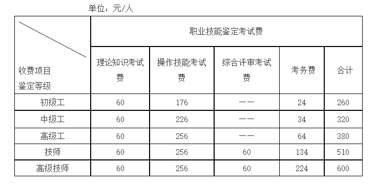 根據(jù)湖南省人力資源和社會保障廳文件《關(guān)于公布我省職業(yè)技能鑒定收費標(biāo)準(zhǔn)的通知》(湘人社規(guī)[2024] 3號)精神,