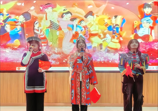 參賽選手緊緊圍繞鑄牢中華民族共同體意識這一主線,結合個人成長經歷、民族故事與典型事跡,從不同角度闡述了對民族團結的深刻理解與實踐感悟。來自24廣告高技1班的壯族學生韋娟霞,以真摯的情感講述了“56個民族服裝千人秀”的生動場景,展現了各民族文化的多彩與共融;25計軟技師班的參賽團隊則創新表現形式,巧妙融入民族歌舞等才藝,生動演繹了各民族和諧共處的畫卷。最終,22數媒高技班黃美玲、21廣告技師班鄒佳琪團隊榮獲本次大賽一等獎。