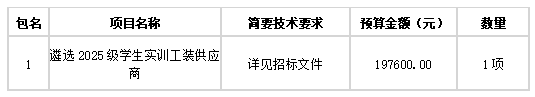 湖南省招標有限責任公司采購代理機構受衡陽技師學院的委托,對遴選2025級學生實訓工裝供應商(委托代理編號:0623-2685N1124004 )進行公開招標采購。歡迎符合資格條件的投標人前來投標。