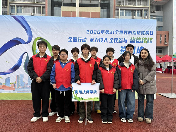 3月19日,學院團委積極響應衡陽市衛健委、共青團衡陽市委號召,組織師生志愿者服務隊參加2026年衡陽市“世界防治結核病日”主題宣傳活動暨百千萬志愿者結核病防治知識傳播行動啟動儀式。