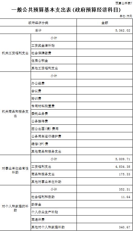 (二)支出預算:2020年年初預算數19861.98萬元,其中,一般公共服務支出19861.98萬元。