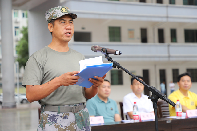 動員大會上,承訓單位負責人宋三江代表軍訓教官鄭重承諾:科學準備,文明訓練。希望同學們在軍訓過程中服務命令,聽從指揮,刻苦訓練,最終訓有所成,學有所獲。