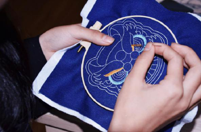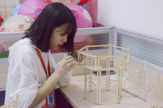 活動前期,該系各班通過誦讀優秀經典詩詞、繪制《慶中秋 迎國慶》主題黑板報等形式,使學生了解傳統節日的文化內涵。系部廣告專業和服裝專業學生,運用自身所學的專業技能,設計制作了宣傳海報、手工燈籠、刺繡香囊等手工作品,作為活動現場的答題獎品。