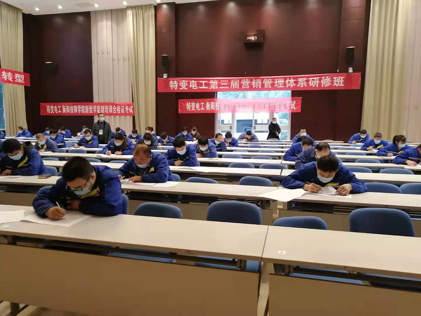 2019年,我院與湖南紅海人力資源有限公司衡陽分公司、金杯電工衡陽電纜有限公司、特變電工集團有限公司衡陽電氣分公司、衡南得意精密電子工業有限公司和湖南華菱汽車有限公司等五家公司開設了新型學徒制培訓班,經過一年的培訓,2020年12月,我院舉行結業考試。考點分別設在特變電工、得意電子、衡陽技師學院,考試中市人社局職業能力建設處、衡陽市紀委全程監督。