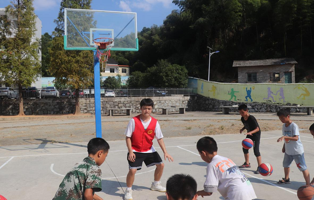 學院支教老師手把手教孩子們打籃球