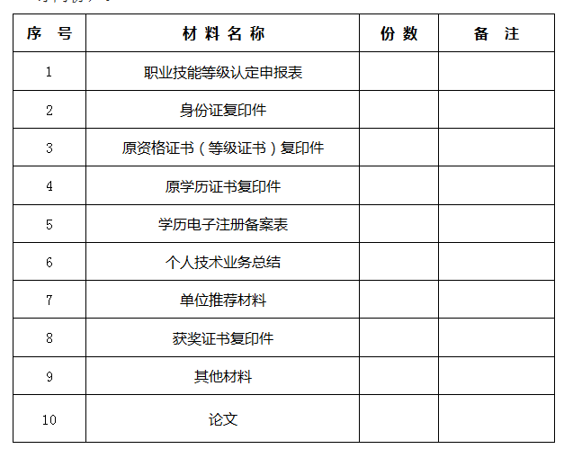 3.申報國家職業資格二級及以上職業技能鑒定還須提交《個人技術總結》和《單位推薦材料》并加蓋單位公章,以及其他加分材料(市級以上獎勵、市級以上技能競賽中獲獎證書、或者承擔技術革新和技術改造,取得重大成果)。