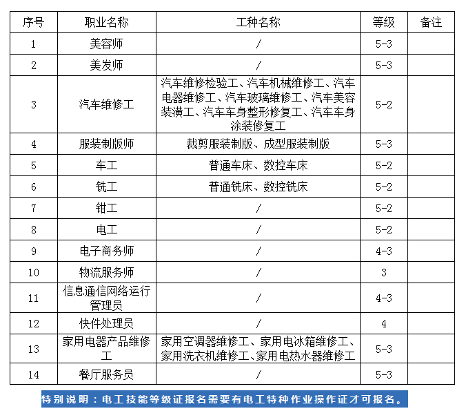 一、認定職業(工種)范圍