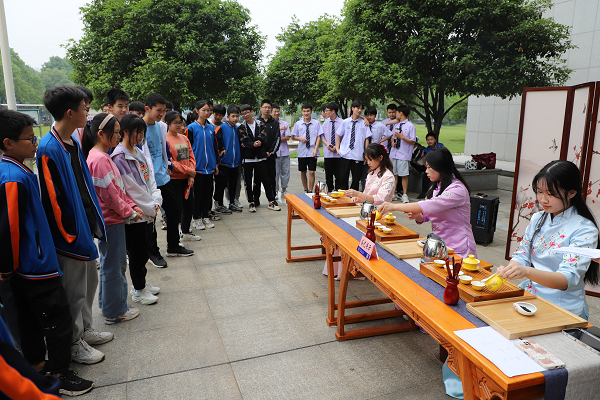 “今天我們選泡的是紅茶,其條索緊細(xì),色澤烏潤(rùn),香氣香甜迷人。沖泡之前,用清清的泉水,洗凈世俗的煩惱,此刻讓我們共賞茶藝溫馨。”活動(dòng)現(xiàn)場(chǎng),經(jīng)濟(jì)貿(mào)易系茶藝協(xié)會(huì)負(fù)責(zé)老師胡以婷從佳茗酬賓、冰清玉潔、佳人入宮、潤(rùn)澤香茗、懸壺高沖(泡茶)、點(diǎn)水留香(分茶)、香茗酬賓(奉茶)、細(xì)啜滿品(品茶)、收杯謝客等茶藝程序?yàn)榇蠹医榻B體現(xiàn)中國(guó)傳統(tǒng)文化的紅茶茶藝。