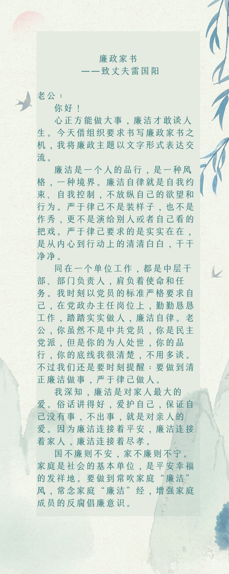清廉學校——書記、院長評家書(七)|副院長歐陽智勇同志評家書:修身齊家守清廉