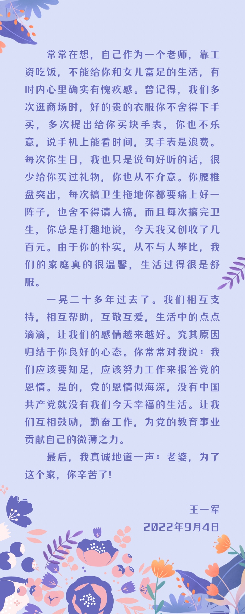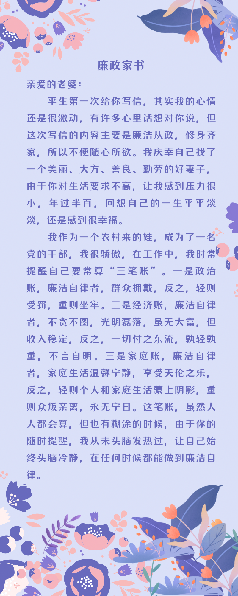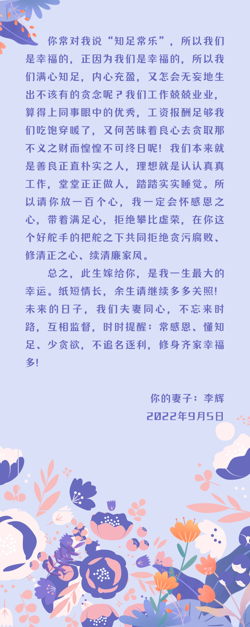 清廉學(xué)校——書記、院長評(píng)家書(五)|紀(jì)委書記王晨旭同志評(píng)家書:義無反顧的長長久久