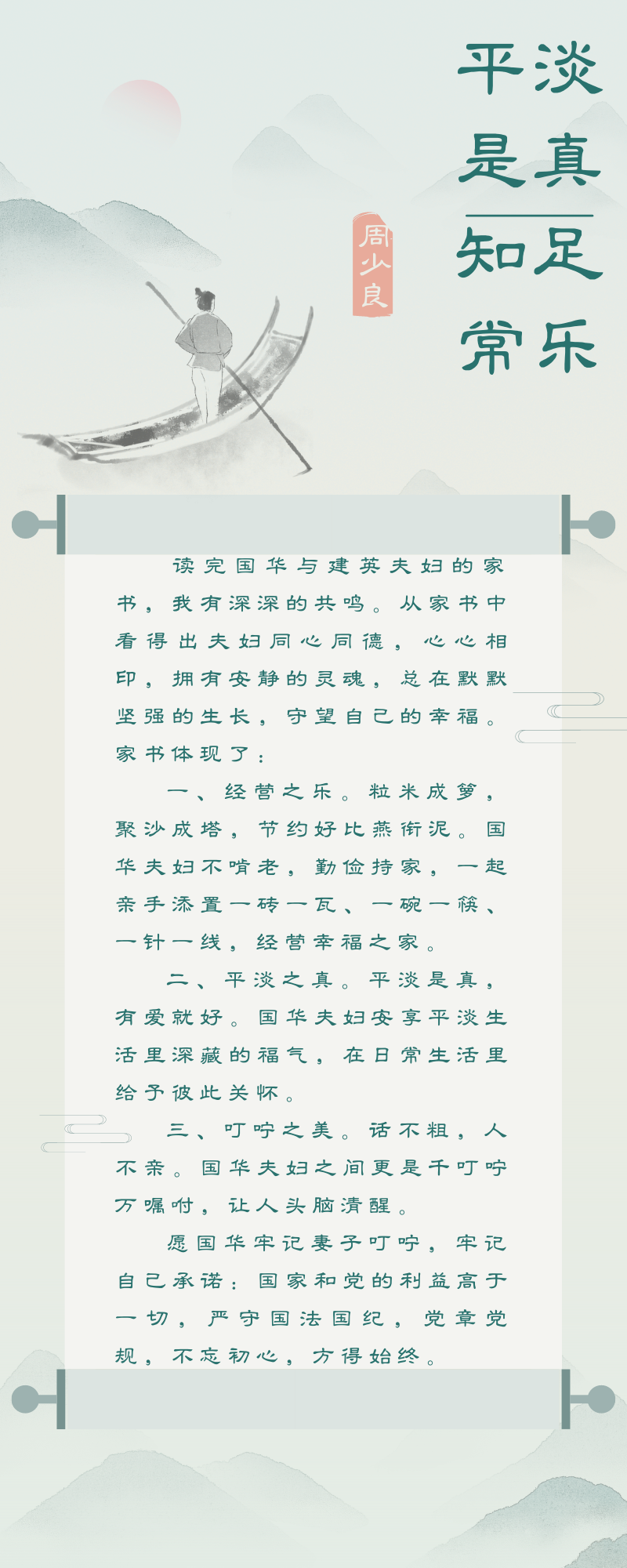 清廉學(xué)校——書記、院長(zhǎng)評(píng)家書(八)|副院長(zhǎng)周少良同志評(píng)家書:平淡是真 知足常樂