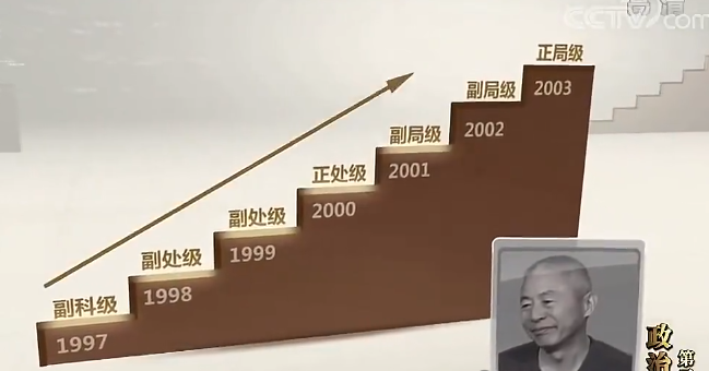 【解說詞】1997年到2003年,是盧恩光仕途的高速發(fā)展期。這段時期,他一年換一崗,六年提六級,從鄉(xiāng)到縣再到省再到北京,從副科級到正局級,火箭速度的背后是金錢助推。