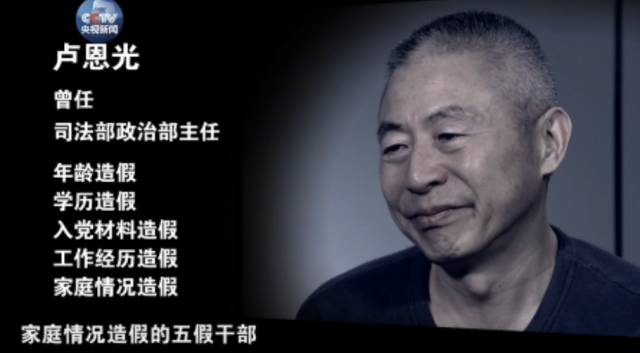【解說詞】巡視期間,盧恩光恰好是司法部黨組與中央巡視組進行聯(lián)絡的負責人,經常要和巡視組打交道。通過觀察,巡視組更感到他檔案里的造假內容,應該不止入黨材料一項。