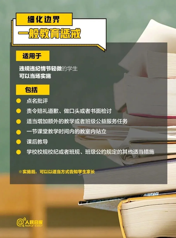 第八條 教師在課堂教學、日常管理中,對違規違紀情節較為輕微的學生,可以當場實施以下教育懲戒: