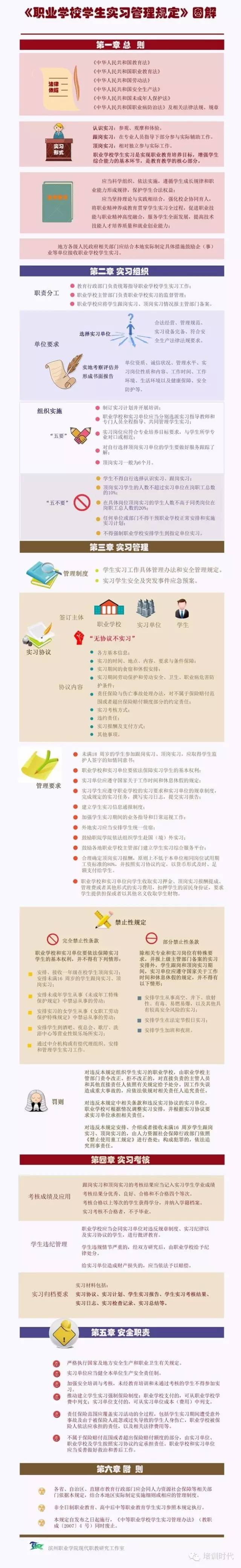 教育行政部門負(fù)責(zé)統(tǒng)籌指導(dǎo)職業(yè)學(xué)校學(xué)生實(shí)習(xí)工作;職業(yè)學(xué)校主管部門負(fù)責(zé)職業(yè)學(xué)校實(shí)習(xí)的監(jiān)督管理。職業(yè)學(xué)校應(yīng)將學(xué)生跟崗實(shí)習(xí)、頂崗實(shí)習(xí)情況報(bào)主管部門備案。