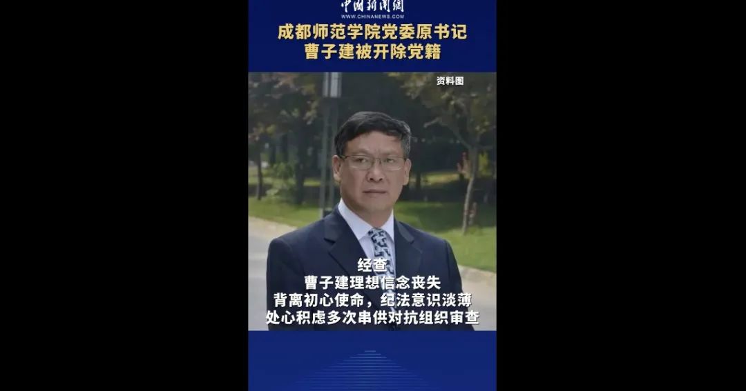 成都師范學(xué)院黨委原書記曹子建涉嫌嚴(yán)重違紀(jì)違法,目前正接受紀(jì)律審查和監(jiān)察調(diào)查。