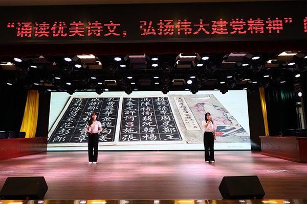 “我不需要什么自白,哪怕胸口對著帶血的刺刀!”比賽在《我的自白書》朗誦中拉開帷幕。隨后,14組參賽者身著正裝依次登臺,選手們個個飽含深情,以配樂朗誦、情景表演等多種藝術形式弘揚偉大建黨精神,他們的朗誦深深地感染著現場每一位聽眾,贏得陣陣掌聲。