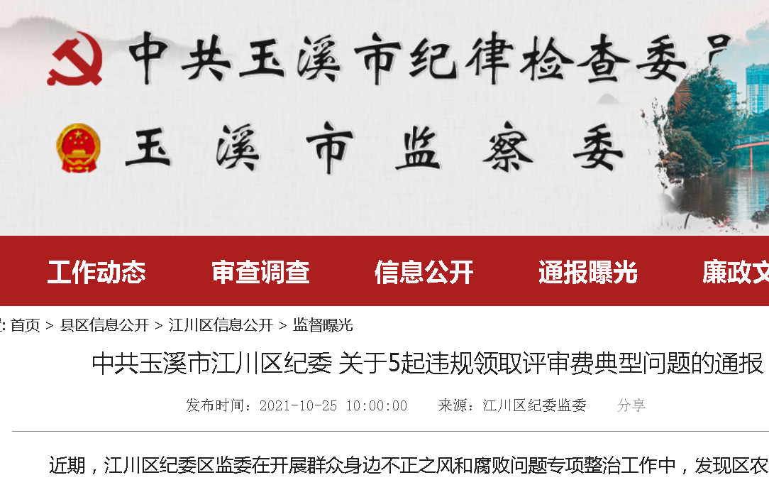 近期,江川區(qū)紀(jì)委區(qū)監(jiān)委在開展群眾身邊不正之風(fēng)和腐敗問題專項整治工作中,發(fā)現(xiàn)區(qū)農(nóng)業(yè)農(nóng)村局、區(qū)醫(yī)療系統(tǒng)、區(qū)文旅系統(tǒng)少數(shù)干部違規(guī)領(lǐng)取評審費(fèi)問題,為進(jìn)一步嚴(yán)明紀(jì)律規(guī)矩,經(jīng)區(qū)紀(jì)委區(qū)監(jiān)委研究,現(xiàn)將相關(guān)情況通報如下:
